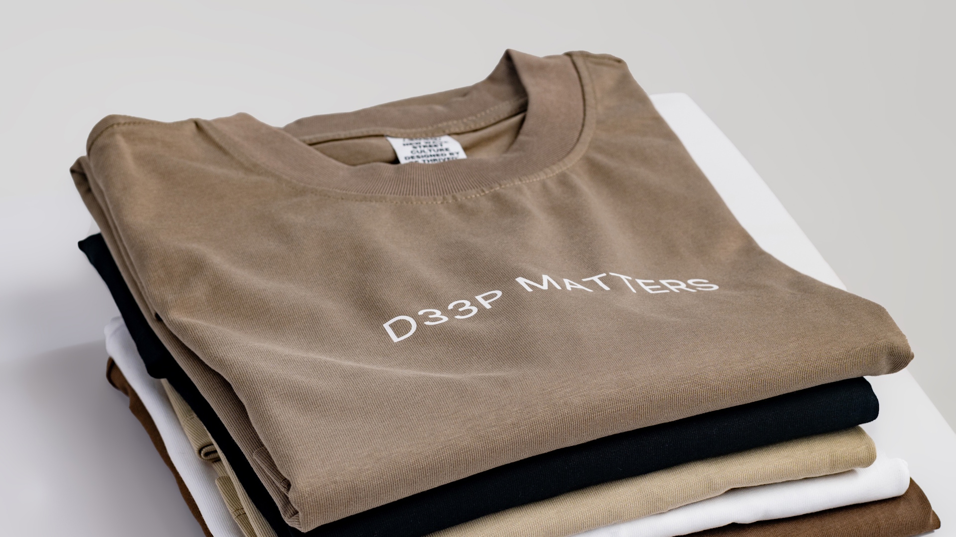 The inspiration behind D33P matters is the music. The brand defines music as life and represent real life stories woven into the fabric of music. The artwork captures the essence of music, creativity and emotional connection with a vinyl as an expression of life; serving as a soundtrack to life’s pivotal moments.
